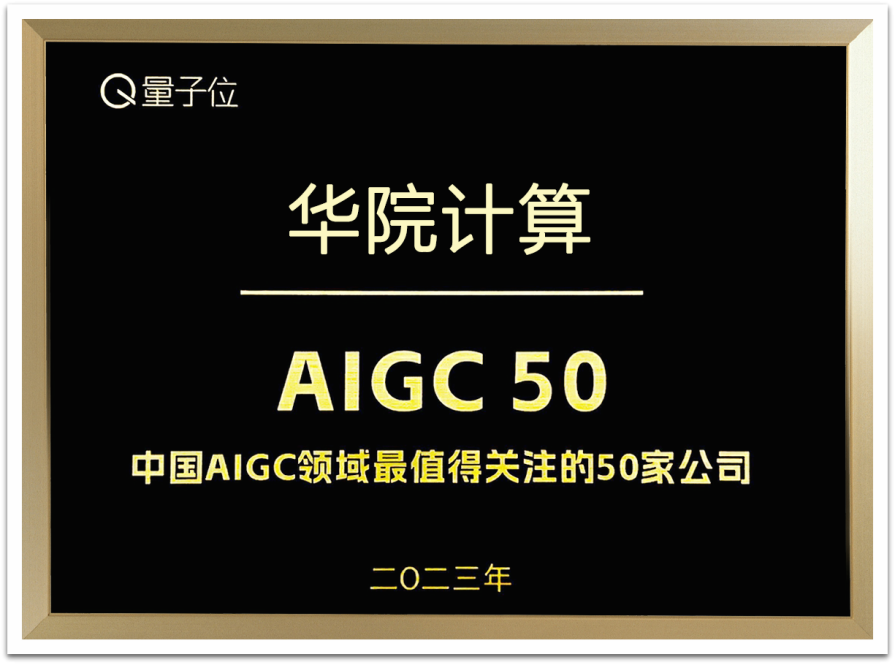 在早前量子位主办的中国AIGC产业峰会上,华院计算因其在AIGC领域的技术突破和创新成果亦荣登『中国 AIGC50』榜单。该榜单由量子位智库从产品进展、技术实力、落地变现、品牌影响力等多个维度,评选出国内值得关注的50家AIGC机构,为业界提供参考价值。同期上榜的还有百度、阿里、腾讯、科大讯飞等国内知名企业。