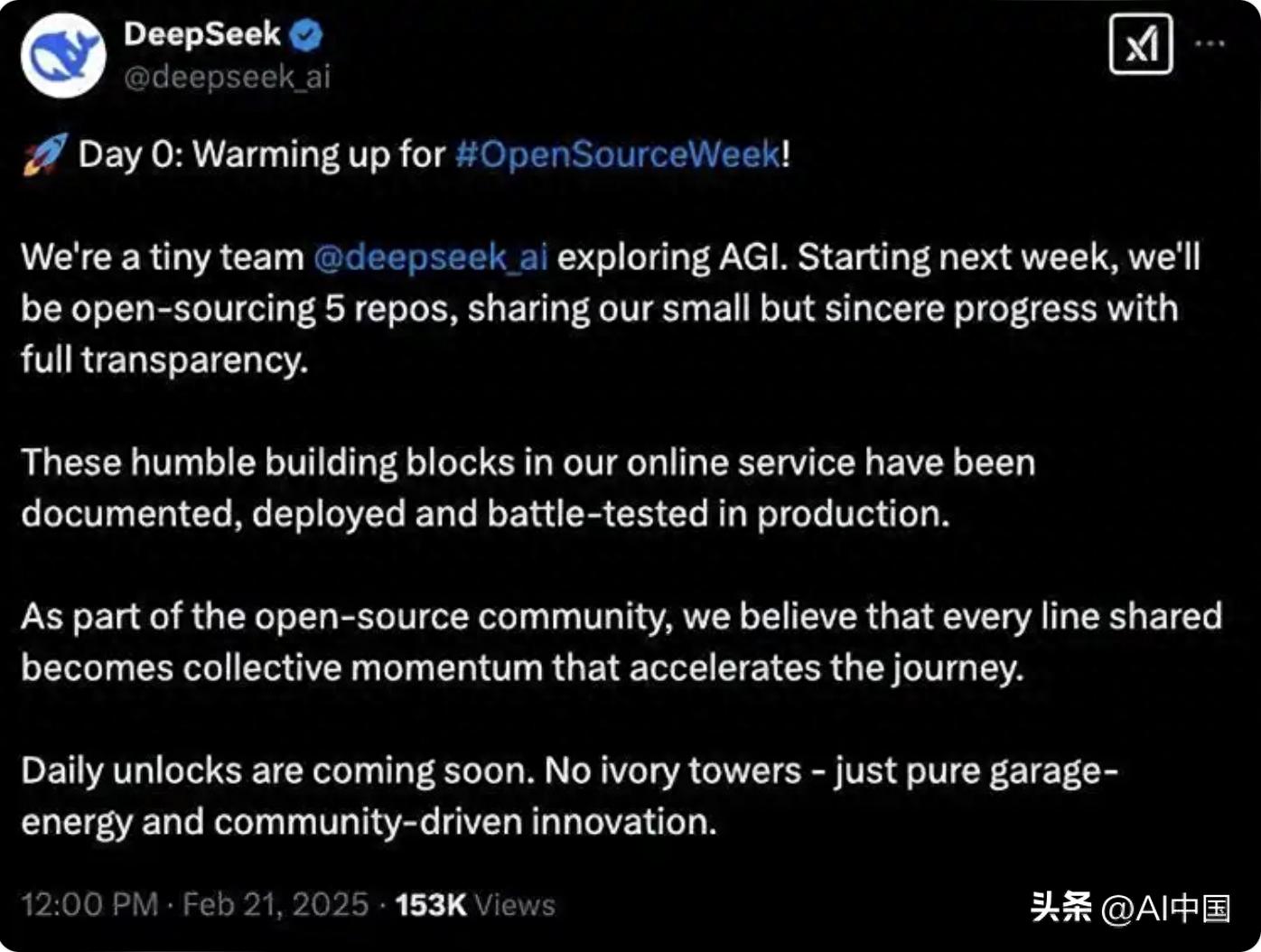 在科技领域,每一个新的开源项目都可能是推动行业进步的重要一步。2月21日,DeepSeek在社交平台X上宣布了一个重要消息:从下周起,他们将陆续开源5个代码库,每日都有新内容解锁,向公众展示其技术积累和创新成果。