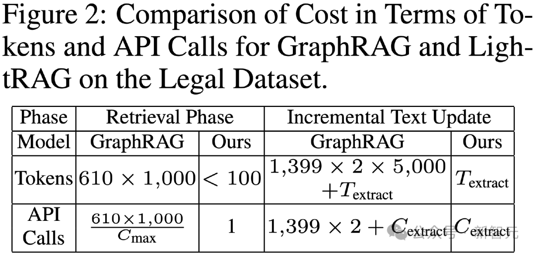 1. LightRAG在检索效率和资源消耗上具备明显优势。其优化的检索机制减少了不必要的信息处理,降低了token和API调用的使用量。