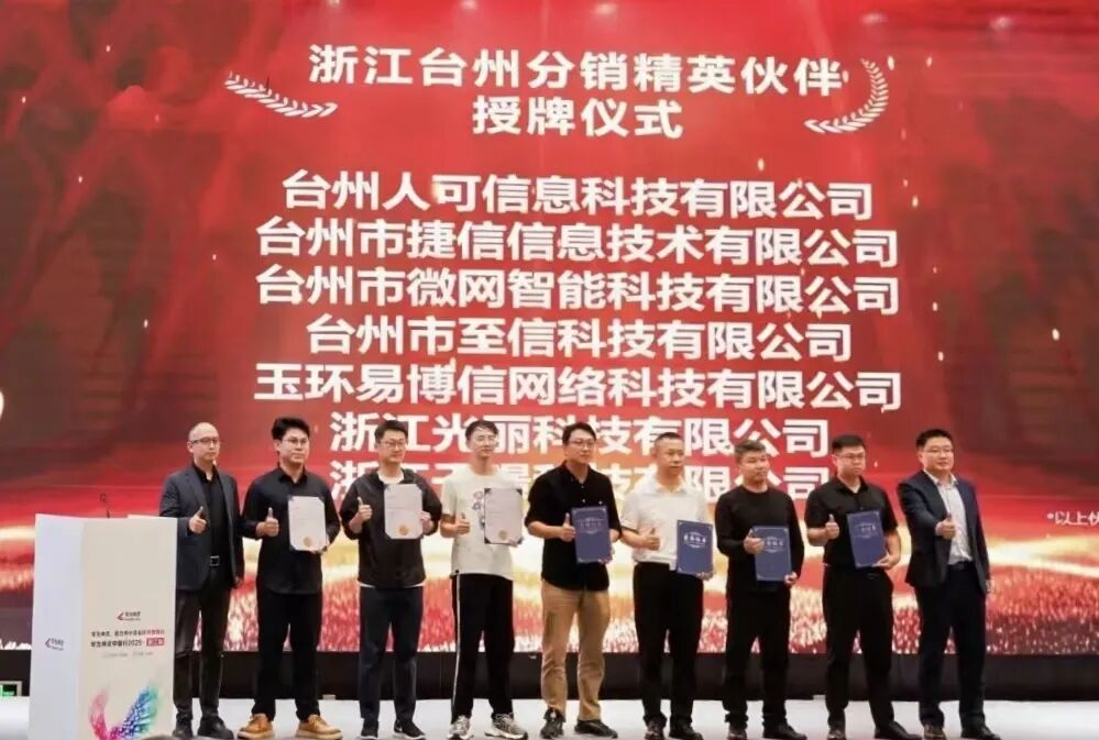 华为坤灵开放多产品授权,并鼓励分销合作伙伴基于华为多产品组合优势拓展分销业务,逐步向多产业精英发展。像浙江数字盈泽科技有限公司从2022年分销存储金牌成长为2025年全国首批分销钻石伙伴,台州市路桥亦辰安防设备有限公司2021年认证智能安防金牌后成功落地多个项目。一大批类似的伙伴,在华为多产品授权与全链路赋能下,逐步突破单一产业边界,成长为兼具多场景方案交付能力与本地化服务实力的骨干力量。在本次活动中,分销精英授牌仪式隆重举行,7家优秀分销伙伴获得授牌,这正是其“百&万计划”层伙伴体系建设的关键落地举措,授牌仪式不仅是对优秀伙伴实力的权威认证,更承载着推动合作伙伴向多产业精英升级、共拓中小企业智能化市场的战略愿景。