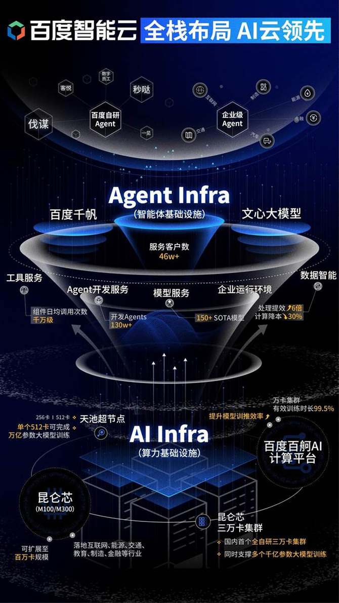 会上,百度智能云发布了全新一代昆仑芯和天池超节点,并宣布未来五年昆仑芯都将按年推出新产品,结合百度百舸AI计算平台,持续打造更强性能的AI Infra,解决国内企业的算力供给问题。百度智能云还升级了以百度千帆为核心的Agent Infra,加速Agent在高价值场景的快速落地。