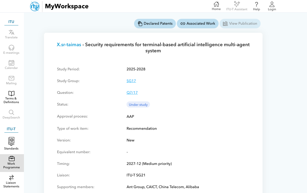 蚂蚁集团牵头的多智能体可信国际标准在ITU成功立项