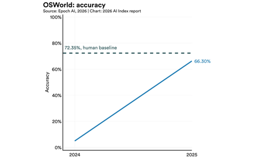 Gemini Deep Think在国际数学奥林匹克竞赛中斩获金牌,但该顶尖模型正确读取指针式时钟的准确率仅为50.1%。在测试跨操作系统真实计算机任务的OSWorld平台上,AI代理的任务成功率从12%跃升至约66%,但在结构化基准测试中,其失败率仍高达三分之一。