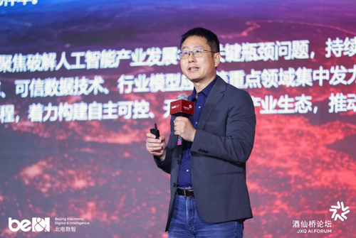本届酒仙桥论坛由中国计算机学会指导,北电数智主办,中关村科技园区朝阳区管理委员会(北京市朝阳区科学技术和信息化局)、北京市朝阳区发展和改革委员会、上海证券报、詹天佑科学技术发展基金会特别支持。北京市经信局副局长陈朝晖,中国科协第十届全国委员会委员、詹天佑科学技术发展基金会副理事长兼秘书长马福海,上海证券报社党委书记、董事长叶国标,北京电控党委书记、董事长张劲松出席并致辞。CCF前理事长、中国工程院院士郑纬民,新加坡工程院院士、香港中文大学(深圳)人工智能学院院长李海洲,清华大学公共管理学院副院长、服务经济与数字治理研究院副院长高宇宁,北电数智首席技术官谢东发表主题演讲。来自全国各省市代表、产业链上下游企业伙伴、科研机构专家等千余位嘉宾齐聚现场,共话AI赋能城市发展新标尺。