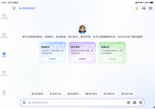 未来,随着AI技术的不断迭代升级,相信它将在特殊教育领域实现更深度的应用——从多模态交互的沉浸式教学,到情感AI的精准情绪干预,再到个性化教案的自动生成,AI将持续赋能特殊教育,推动行业实现更高质量的发展,让每一位特需学生都能拥有平等的教育权、发展权,绽放属于自己的精彩,而这正是AI赋能特殊教育的终极意义。