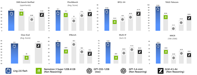 值得注意的是,Ling-2.6-flash并非一味追求“省”,而是在控制token消耗的前提下,面向Agent场景进行了定向增强。